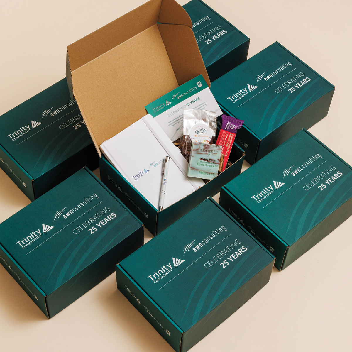 We design beautifully packaged corporate gift boxes, fully customised for client appreciation, employee milestones, staff onboarding, conferences, and corporate events.
