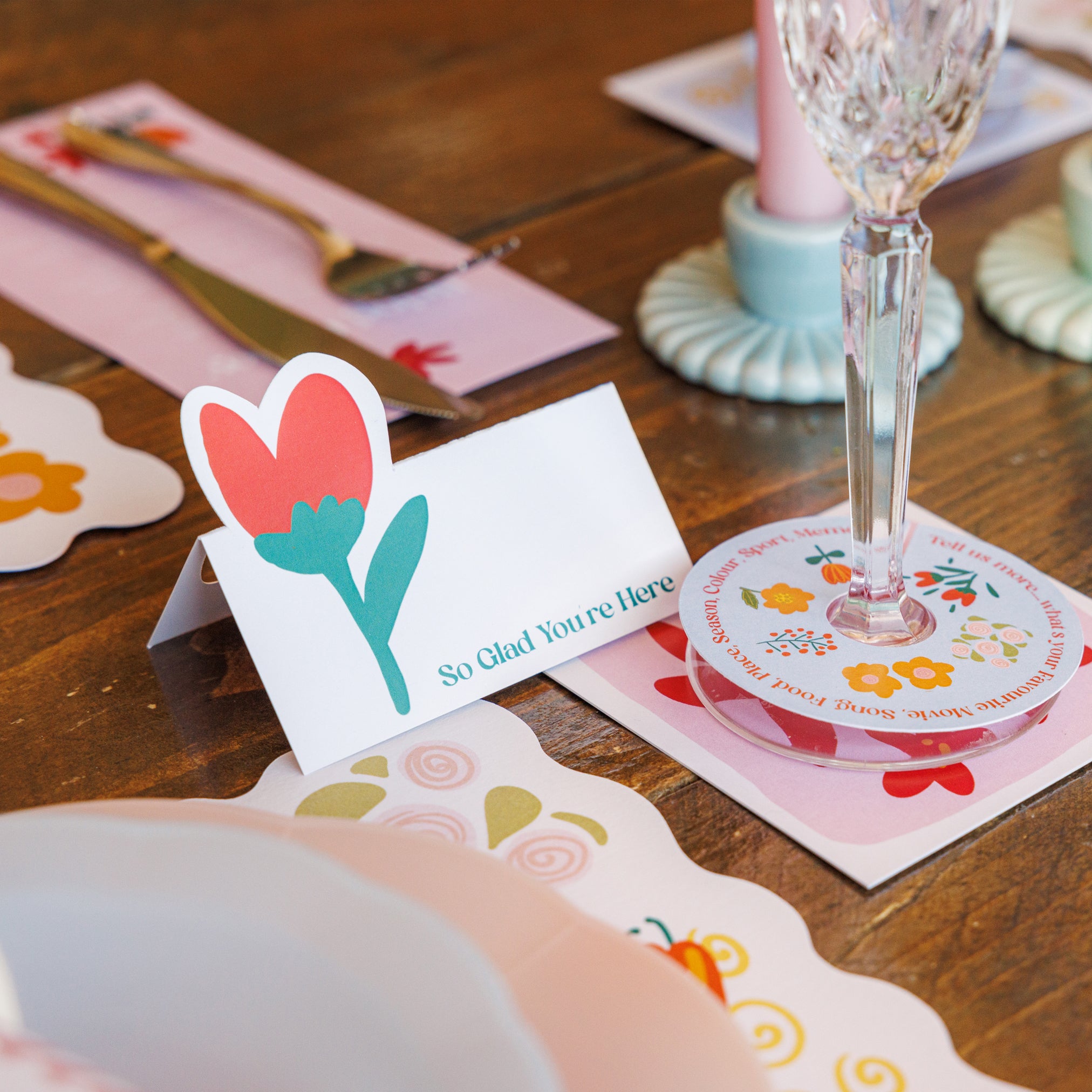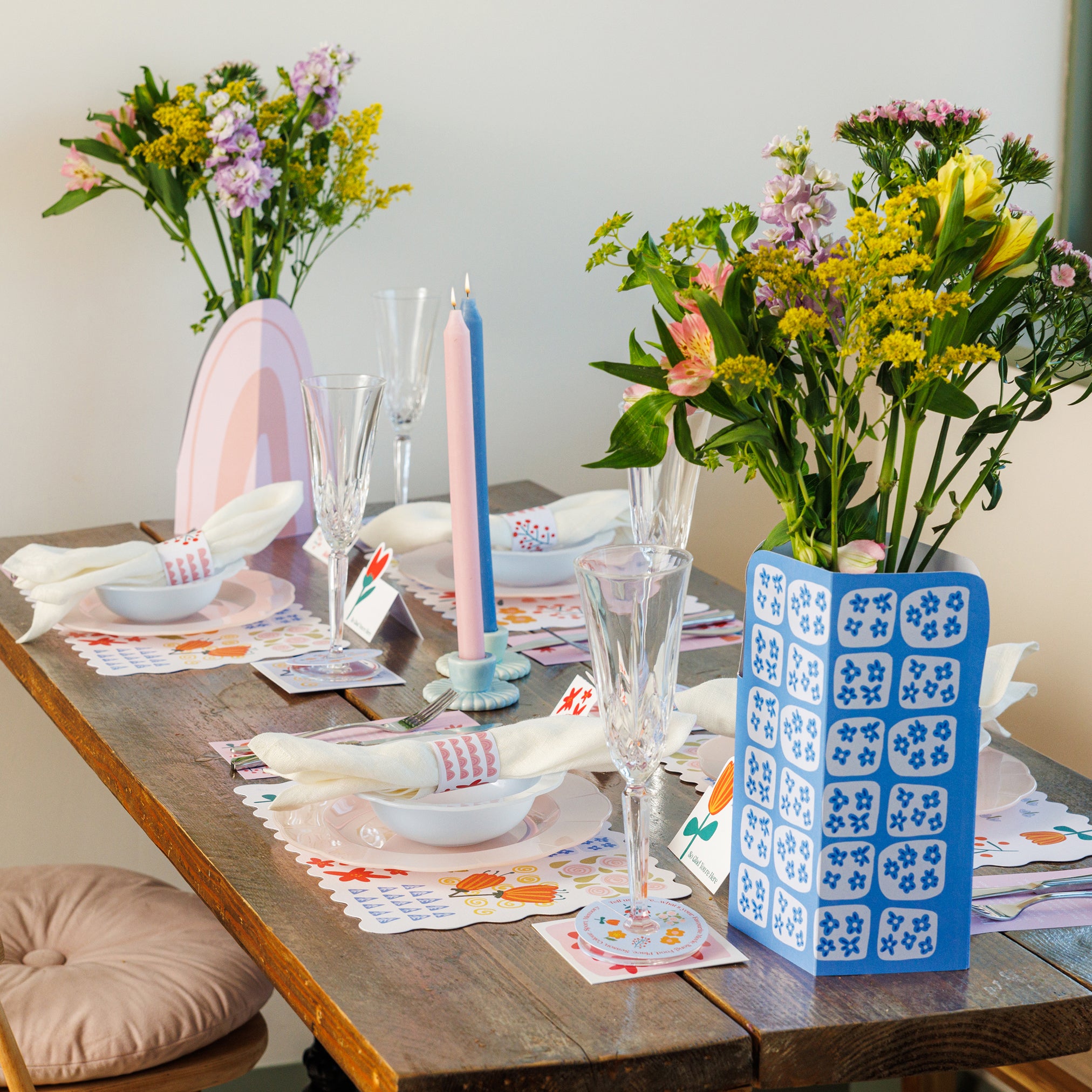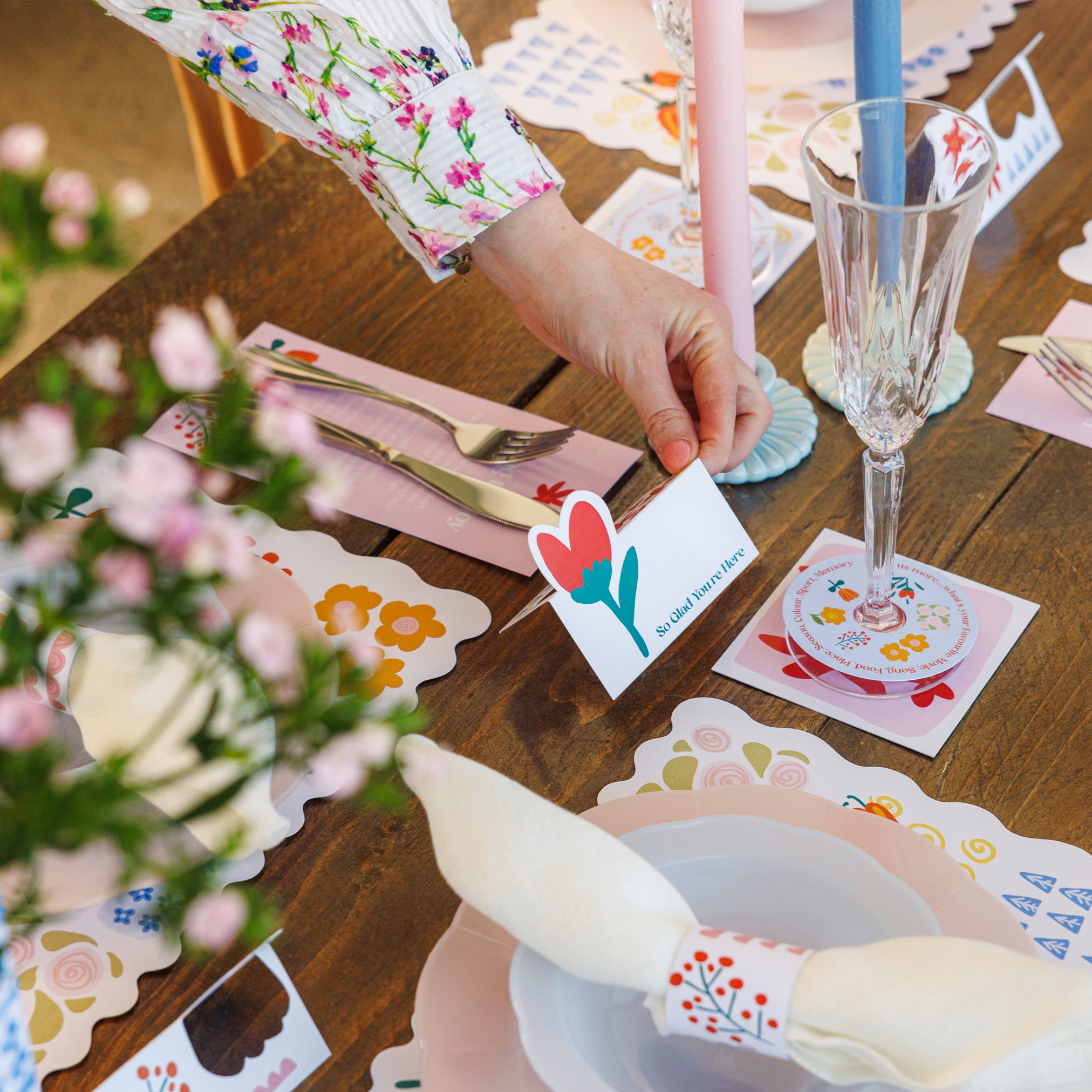 - 4 x Name cards with cut-out flowers for a personal and playful feel