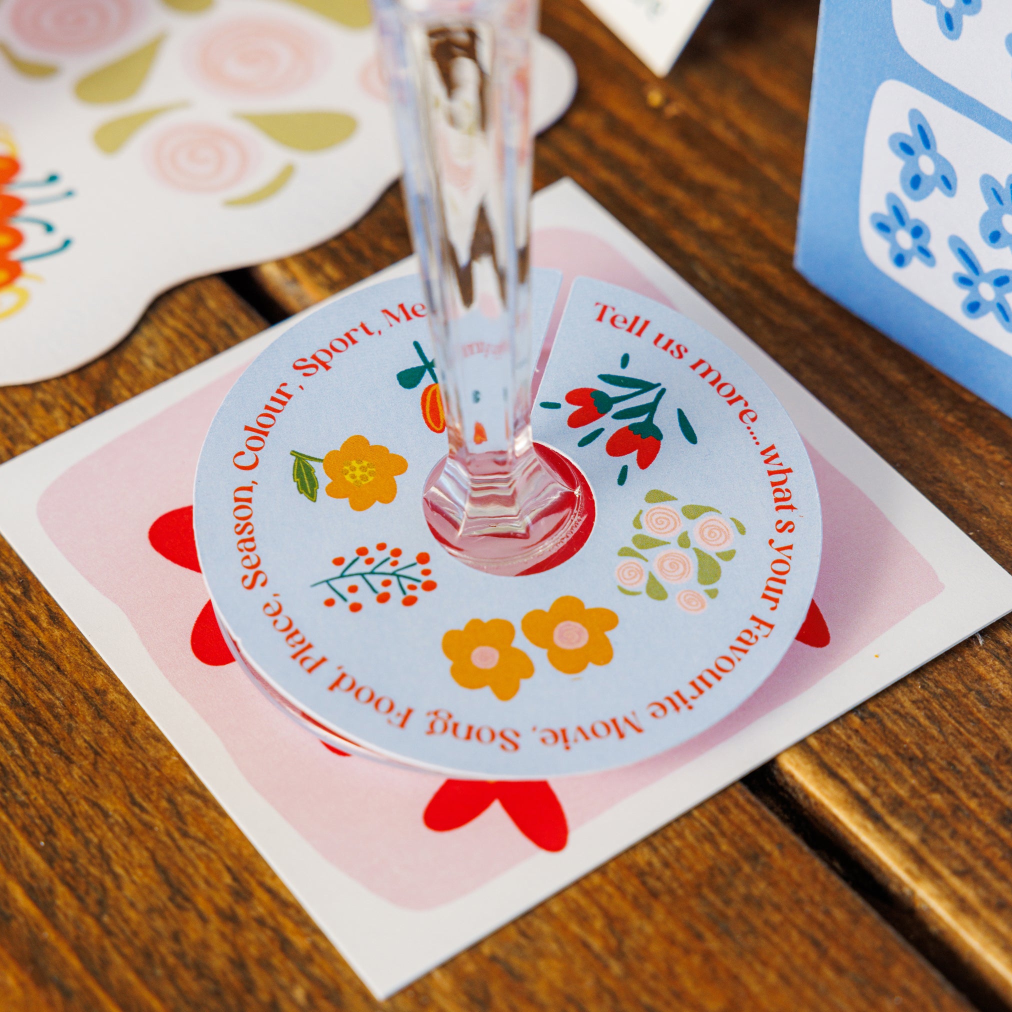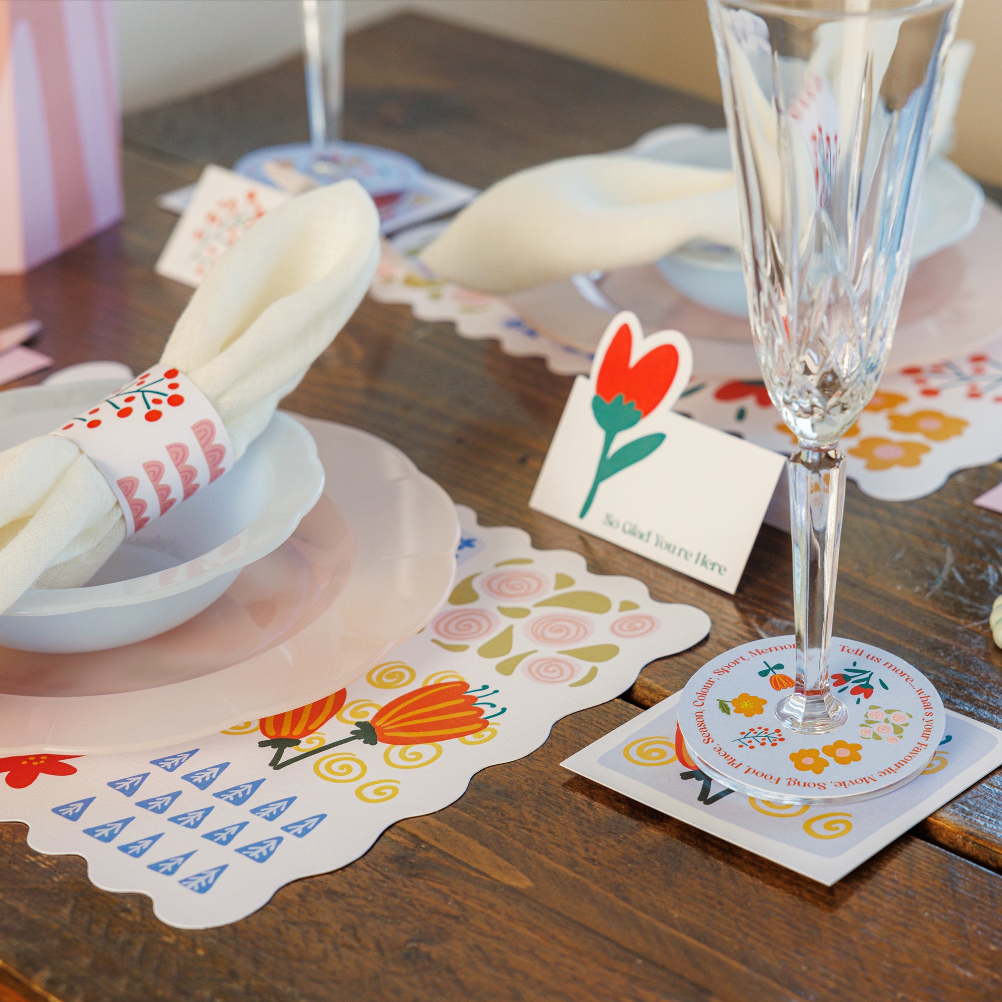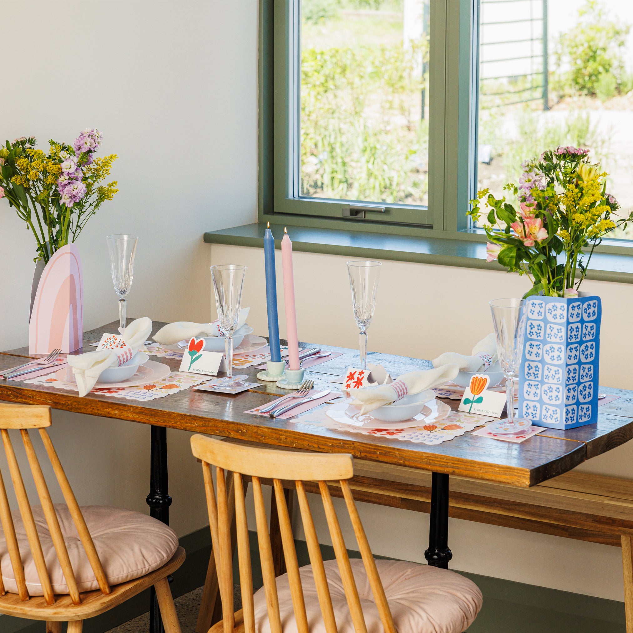 - 4 x Name cards with cut-out flowers for a personal and playful feel