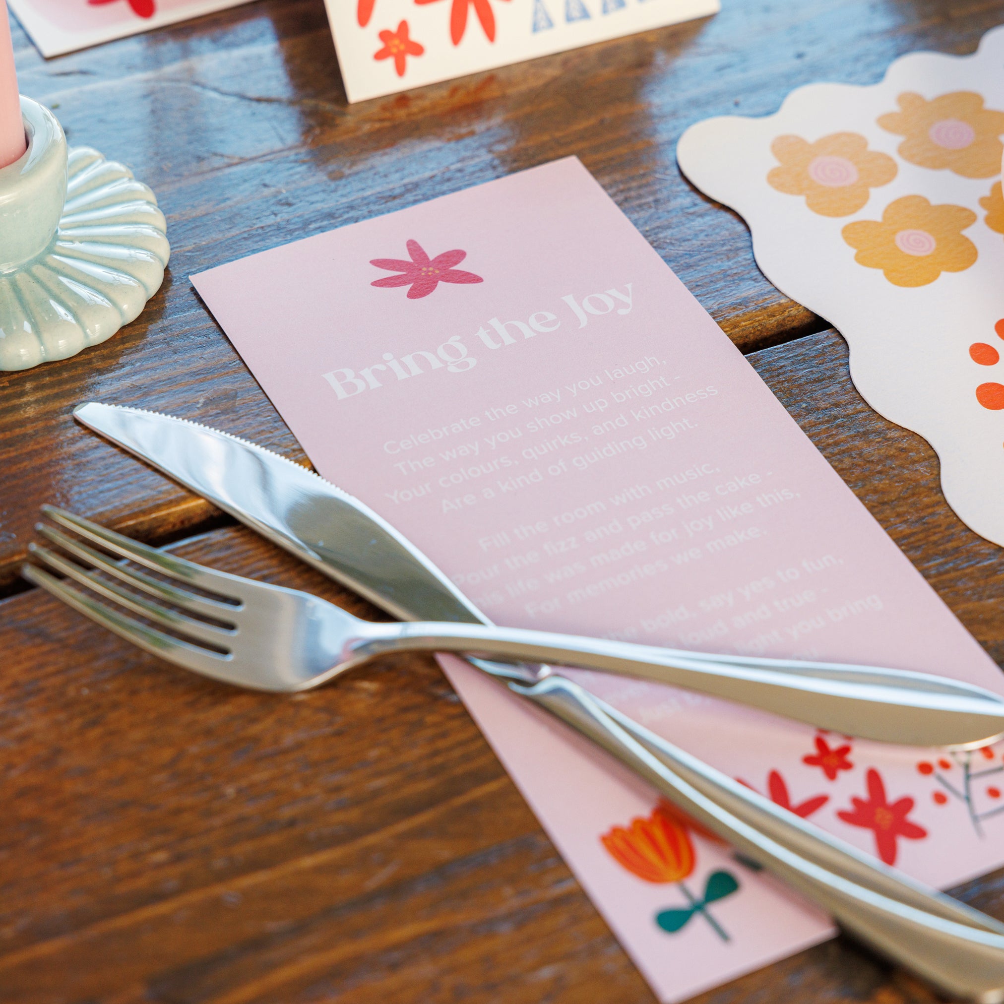 - 4 x Cutlery placemats featuring a poem your guests can take home