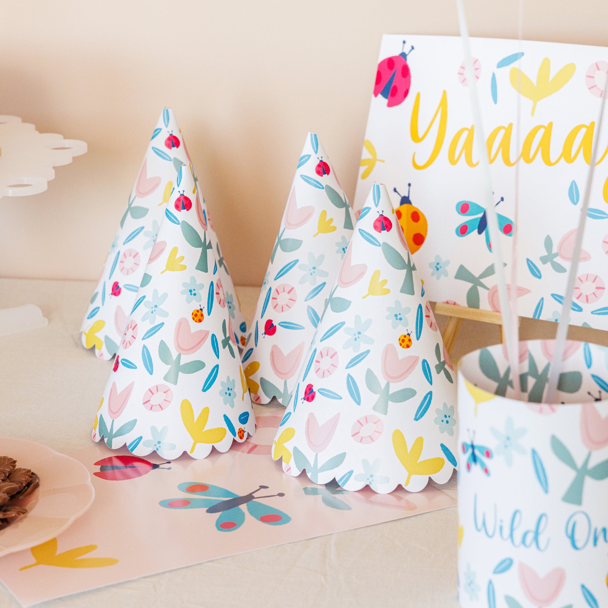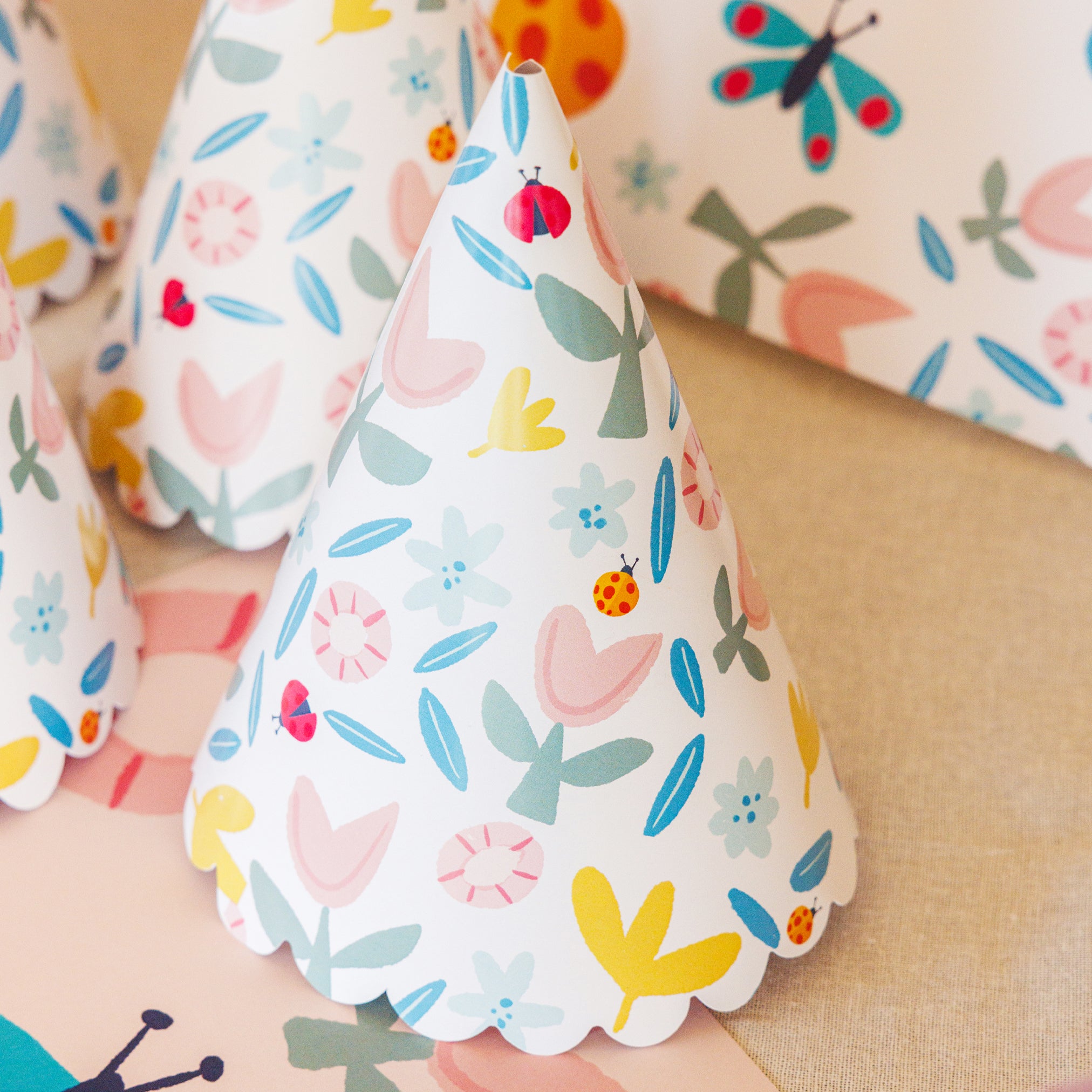 - 4 x Scalloped-edge Party Hats – in our signature floral print