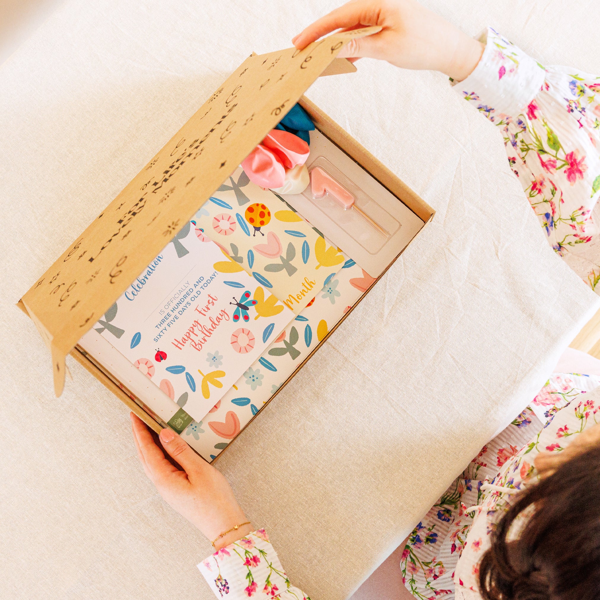 Inspired by my own little girl, Essie, and the magic of watching her grow, this First Birthday Box is designed to help you celebrate your baby’s milestone with heart, colour and ease. Every piece inside has been carefully created to turn a simple gathering into a memory you’ll cherish forever.