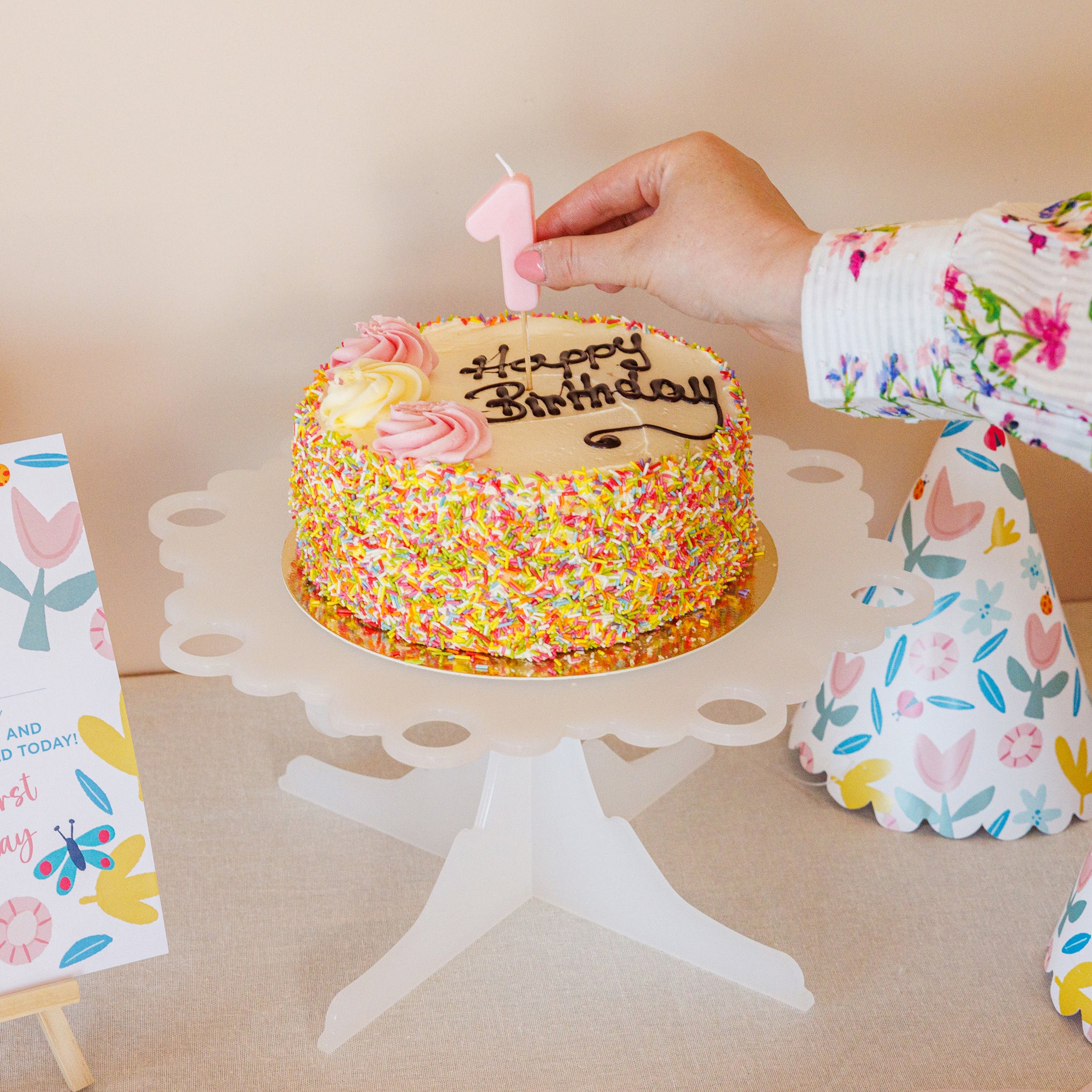 - 1 x Number 1 Candle – soft pink for the sweetest cake moment
