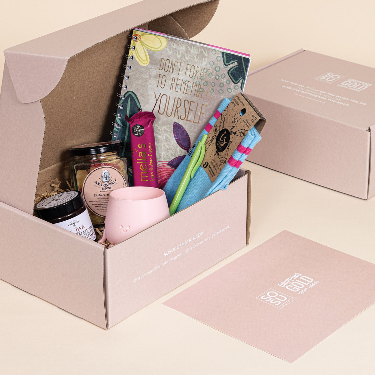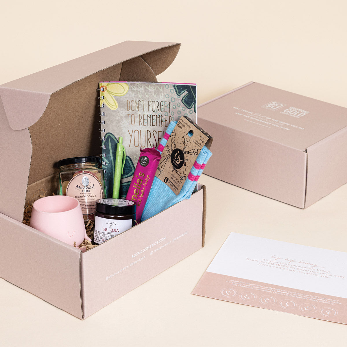 We have curated gift boxes for Airbnb, Net Affinity, Roadstone, SOSU Cosmetics, Teneo, Brackley Landscapes, PwC, TerminalFour, and Ei Electronics among many others. From one gift to one thousand, each box is designed to reflect your brand and leave a lasting impression.