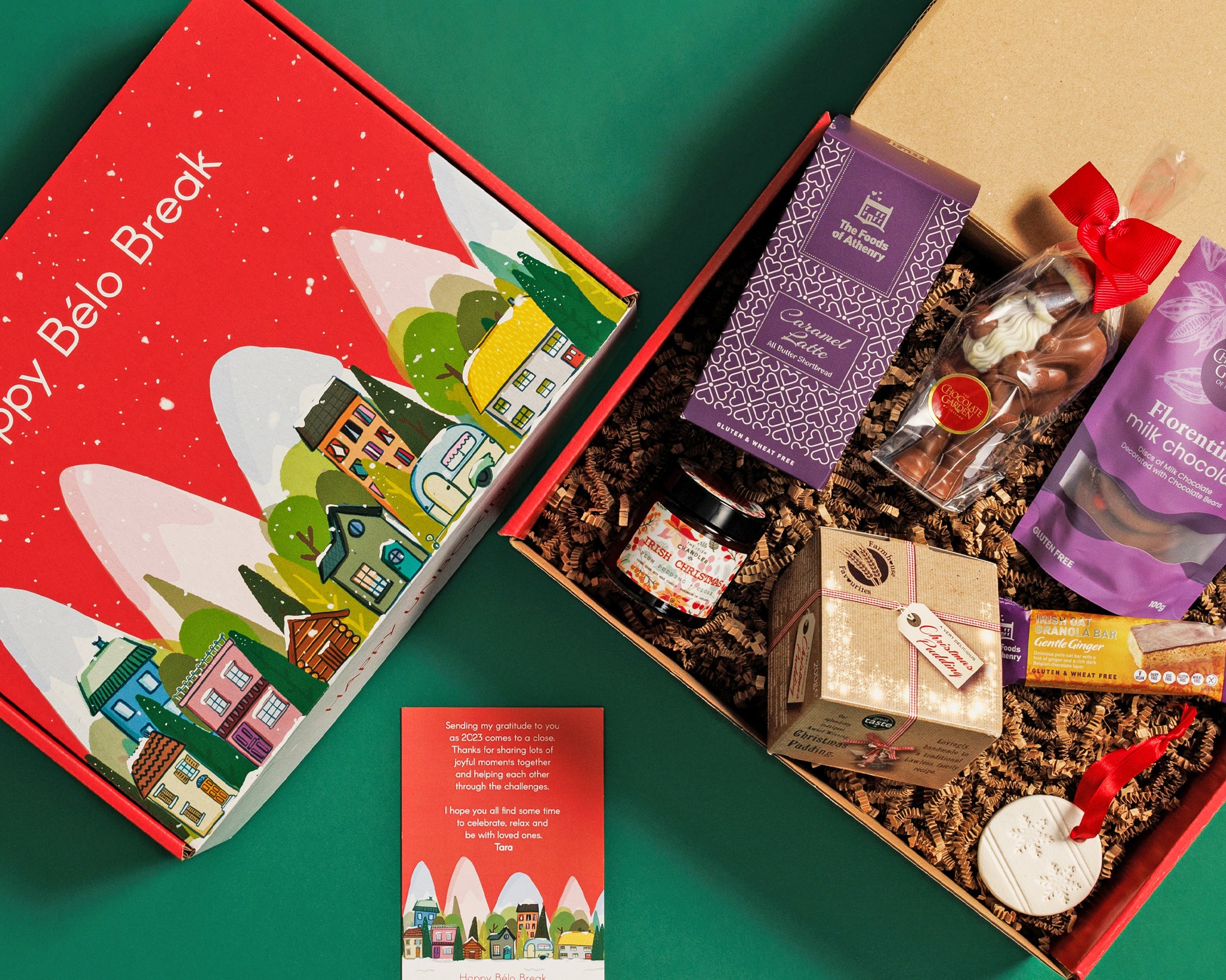 Every gift box is filled with Irish-made products. From festive confectionery and artisan chocolates to candles, wellbeing items, and cosy winter treats. All chosen to make your employees and clients feel seen and valued.