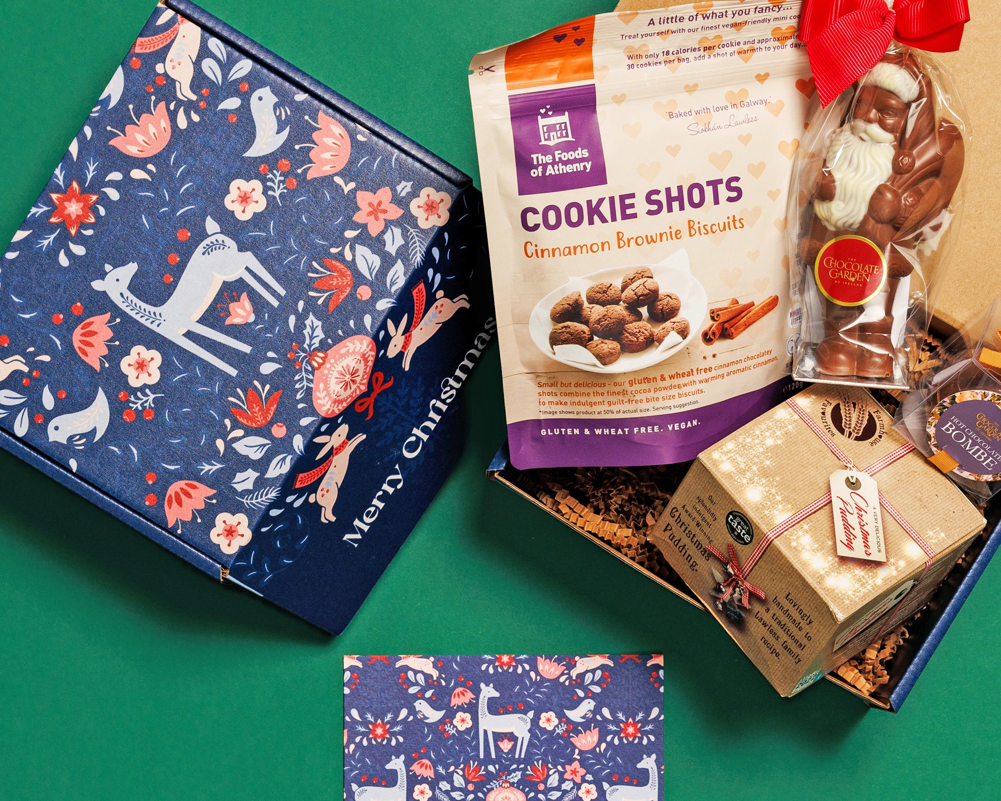 Ready-to-order Christmas gift boxes filled with Irish artisan products, available from 30 to 3,000 boxes right up to December.