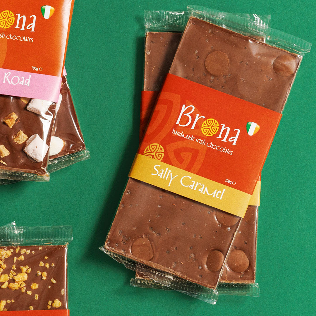 Creamy milk chocolate studded with caramel drops and a hint of Irish Atlantic sea salt—sweet, salty, and utterly irresistible!