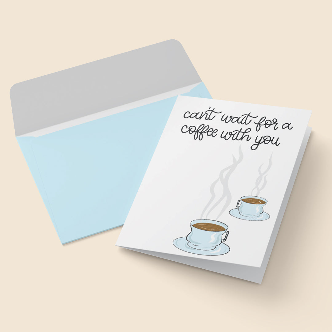 This cuppa-tastic greeting card, bedecked with a delightful hand-illustrated design, expresses the joy of getting together with a pal for a caffeinated chat-a-latte. Let them know that you can't wait to savour the warmth of their company, and that the time spent together will be cherished for always!